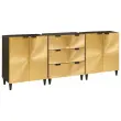 vidaXL Strani šal 3 pcs Črna in zlata 60 x 33 x 75 cm trden mangov les