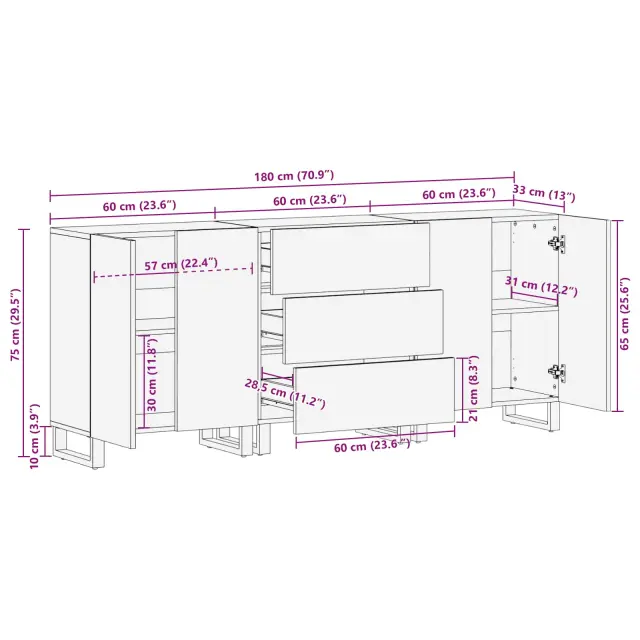Ta pravokotni stranski stroj redefinira eleganco. Njegova preprosta moderna zasnova je idealna za tiste, ki cenijo lepoto in funkcionalnost. S svojimi funkcionalnimi linijami se popolnoma ujema z dnevno sobo in ponuja privlačno rešitev za shranjevanje, ki je lahko osrednja točka v vsakem prostoru. Predstavljaj si ga kot osrednji del tvojega doma, saj se brez težav zlije z različnimi slogi in spremeni tvoj prostor v moderen kotiček.