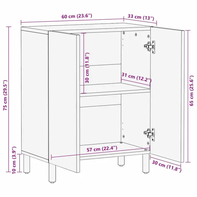 vidaXL Strani šal Acacia rjav finiš 60 x 33,5 x 75 cm