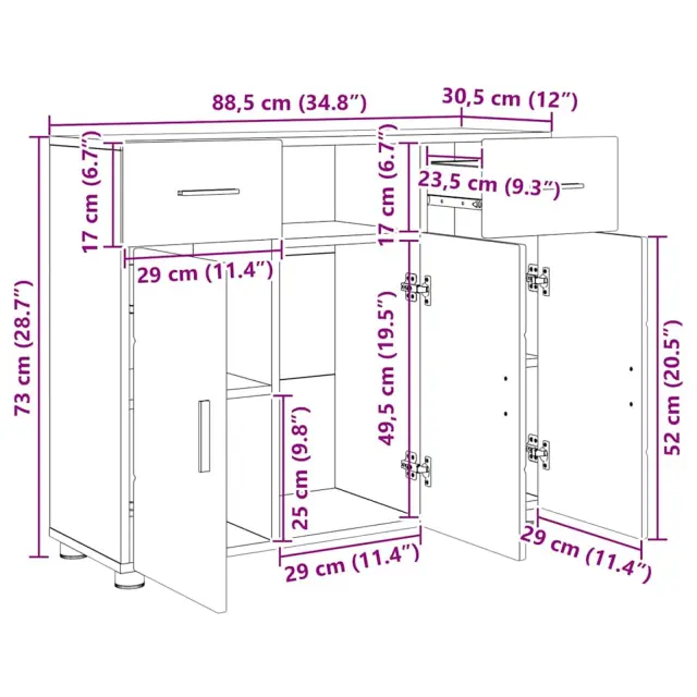 vidaXL Strani šal artisan hrast 88.5 x 30.5 x 73 cm Konstruiran les