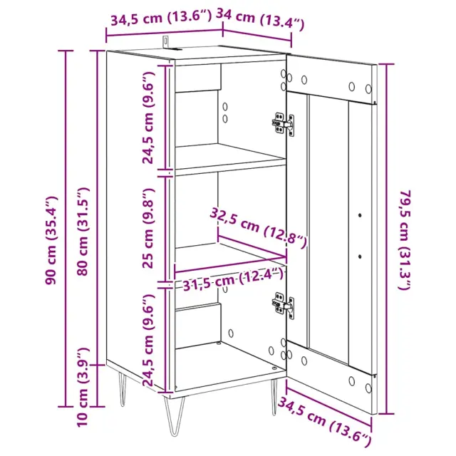 vidaXL Strani šal Črna Orehovina 34,5 x 34 x 90 cm