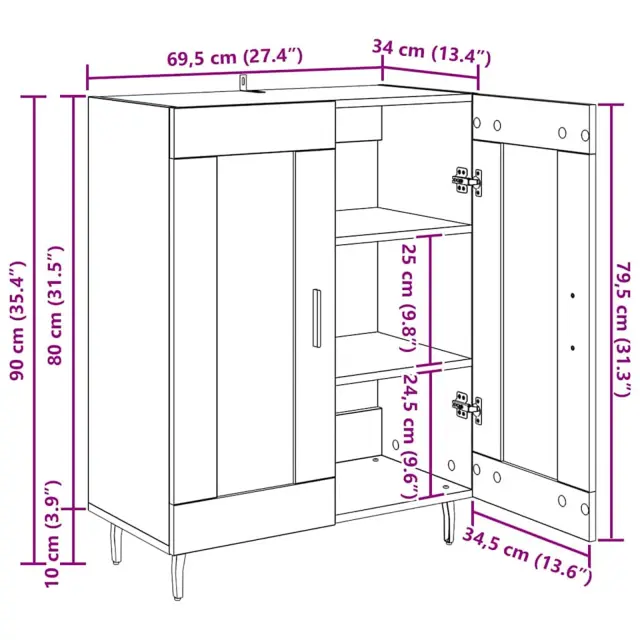 vidaXL Strani šal Črna Orehovina 69,5 x 34 x 90 cm