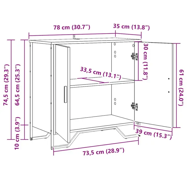 vidaXL Strani šal Črna Orehovina 78 x 35 x 74.5 cm