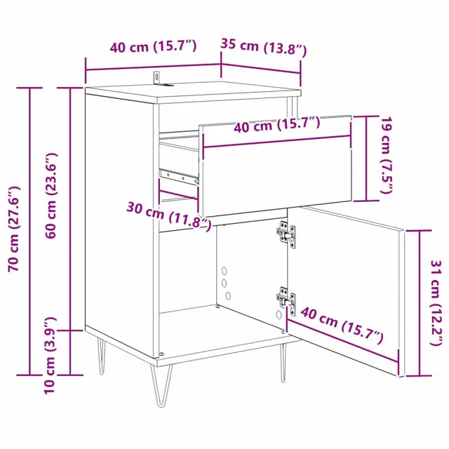 vidaXL Strani šal Črni hrast 35 x 40 x 70 cm Konstruiran les