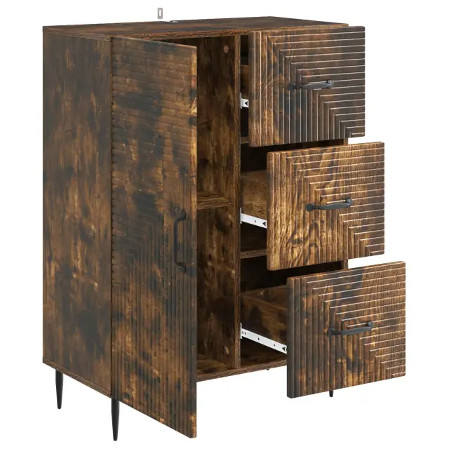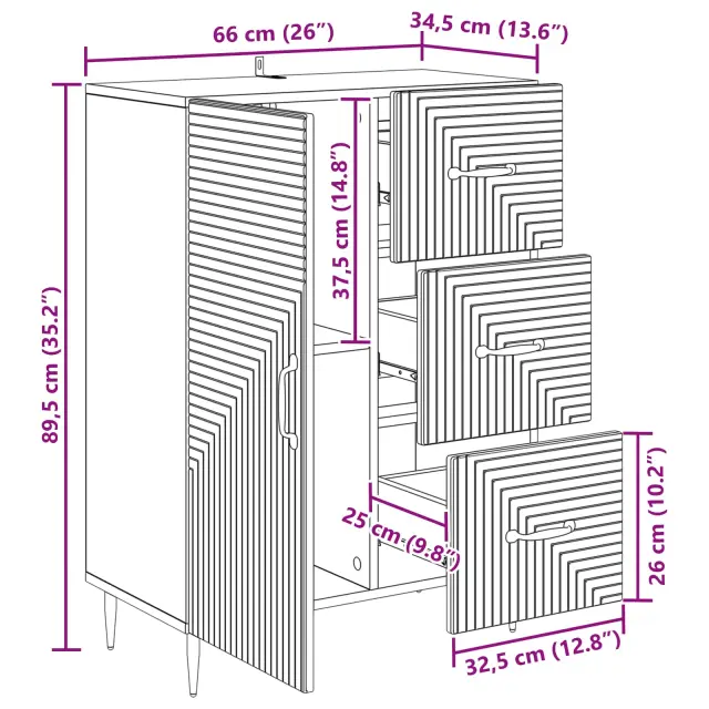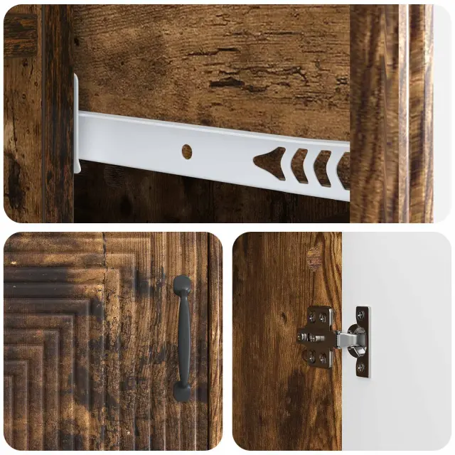 Ta moderna omarica združuje vintage šarm s sodobno funkcionalnostjo ter ponuja eleganten pravokoten profil, ki je super za jedilnice ali dnevne prostore, kjer potrebujete stil in shranjevanje. Njena vsestranska zasnova se brez težav prilagaja retro okolju, saj ponuja veliko prostora za različne potrebe po organizaciji.