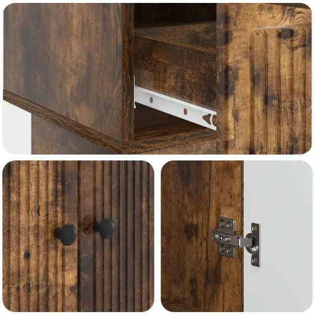 • Iz inženirskega lesa: Ta sideboard je zasnovan za vzdržljivost in zanesljivost. Material nudi gladko površino ter stabilnost, kar pomeni, da ga lahko dolgotrajno uporabljate doma.