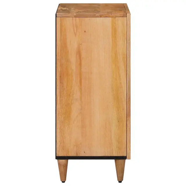 Ta moderna stranska omarica vas takoj pritegne s svojim čistim pravokotnim oblikovanjem in praktičnostjo. Zasnovana je z odličnim spojem trdega mangovega lesa in inženirskega lesa, kar ustvarja super kombinacijo estetike in uporabnosti. Njen eleganten izgled izžareva preprostost in funkcionalnost, kar jo dela odlično izbiro za sodobne notranjosti. S predstavitveno zadnjo stranjo omogoča fleksibilno postavitev, tako da ponudi tako stil kot praktičnost z vseh kotov.