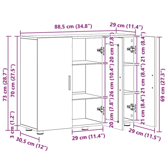 vidaXL Strani šal s polico Črna 55.5 x 29 x 100 cm Konstruiran les