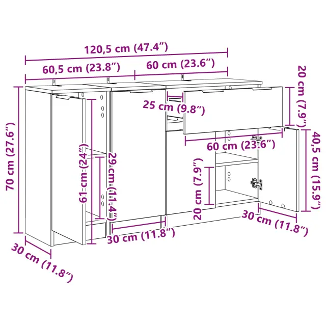 vidaXL Strani šal s predalom 3 pcs Star les Konstruiran les