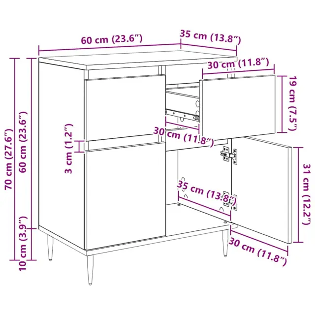 vidaXL Strani šal s predalom Črna Orehovina 60 x 35 x 70 cm