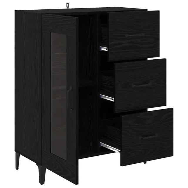 vidaXL Strani šal s predalom Črna Orehovina 69,5 x 34 x 90 cm