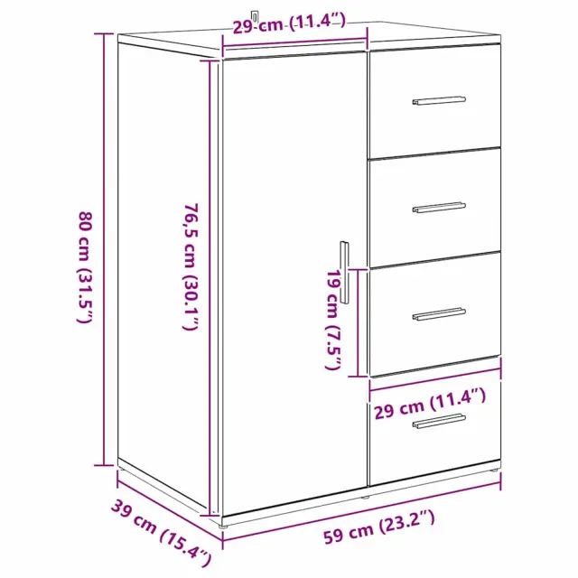 vidaXL Strani šal s predalom Star les 59 x 39 x 80 cm Konstruiran les
