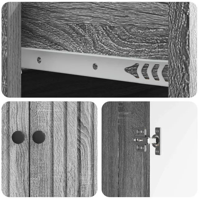 Ta moderni kabinet združuje stil in funkcionalnost. Njegov eleganten videz se lepo prilega sodobnim prostorom. Pravokotna oblika dodaja geometrijsko eleganco, kar dodatno izstopa. Prilagojen je za notranjo rabo, zato prinaša sofisticiranost in uporabnost v kuhinjske ali jedilne prostore ter dviguje celoten izgled prostora.