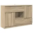 Inženirski les: Ta stranska omarica je izdelana iz močnega inženirskega lesa, kar ji daje zanesljivost in eleganco. Ta material zdrži vsakodnevno uporabo in ima lep poliran zaključek, ki je odporen na obrabo. Tudi gladka površina ji izboljša videz in uporabnost. Funkcionalne komponente: Z gladkimi tečaji in krogličnimi ležaji v predalih omogoča omarica enostavno delovanje. Tečajna vrata olajšajo dostop do notranjih prostorov. Inženirski les na hrbtišču ohranja njeno strukturo. Te komponente se povezane za optimalno shranjevanje, ne da bi pri tem trpeli njen stil. Sodoben dizajn: Sodobni videz stranske omarice se odraža v njenih čistih linijah. Njena preprostost omogoča, da se brez težav sklada z različnimi dekorji. To pohištvo izboljša izgled vaše dnevne sobe in nudi praktično rešitev za shranjevanje. Vsestranska uporaba: Največkrat se uporablja za notranjo opremo, a bo ta omarica idealna za dnevno sobo ali jedilno prostor. Njena velika kapaciteta shranjevanja je odlična za organizacijo vsega, od pribora do drugih domačih stvari, kar omogoča urejeno in brezskrbno okolje. Vzdrževanje in nega: Zasnovana je tako, da je enostavno vzdrževati: preprosto jo obrišite s suho krpo, da ohranite čisto površino. Da podaljšate njeno življenjsko dobo, sledite navodilom za sestavljanje in jo pritrdite na steno, da preprečite prevrnitev.