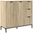 • Gradnja iz inženirskega lesa Komoda je sestavljena iz visokokakovostnega inženirskega lesa, ki izgleda kot naravni les. Ta material je znan po dolgotrajni odpornosti, kar pomaga, da komoda ostane lepa skozi čas. Inženirski les je tudi lahek, kar olajša premikanje, njena gladka površina pa omogoča enostavno čiščenje.