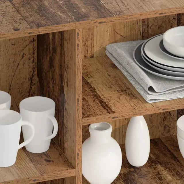 • Inkluzivni sestavni deli: Kabinet ima policne površine iz inženirskega lesa, ki nudijo pametno rešitev za shranjevanje. Nedokončana hrbtna stran ne vpliva na uporabnost, saj omogoča enostaven dostop do shranjenih stvari. Vsak del ima svoj pomen, kar povečuje možnosti shranjevanja enote.