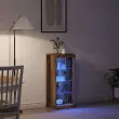 • Vključene komponente: Vsaka kredenca ima vgrajene LED trakove v steklenih policah. Večbarvne LED luči ustvarjajo toplo vzdušje, ki ga je enostavno nadzorovati s preprostim potisnim gumbom. Vgrajena osvetlitev omogoča enostavno ogledovanje vaših eksponatov, dodaja funkcionalnost in stil vsakemu prostoru.