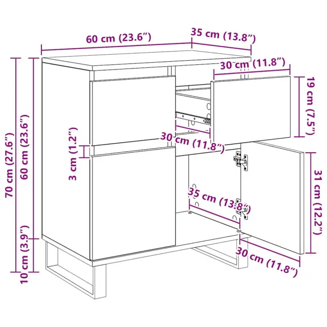 Ta trdna stranska omarica je super dodatna oprema za sodobne domove in ponuja ogromno prostora za shranjevanje v elegantni obliki. Preprosta in funkcionalna, se brez težav prilega dnevnim sobam ali jedilnicam in ohranja okolje organizirano in estetsko privlačno.
