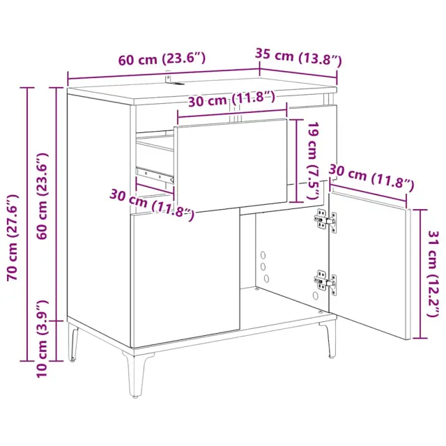 • Splošne dimenzije: 60 x 35 x 70 cm (D x Š x V)