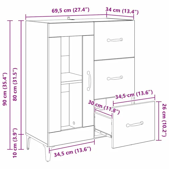 vidaXL Strani šal Star les 69,5 x 34 x 90 cm Inženirski les in železo