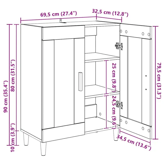 vidaXL Strani šal Star les 69,5 x 34 x 90 cm Konstruiran les