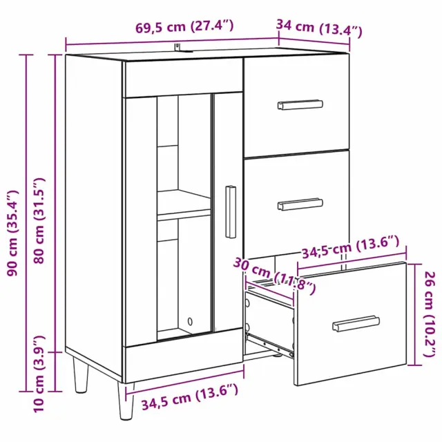 vidaXL Strani šal Star les 69,5 x 34 x 90 cm Konstruiran les