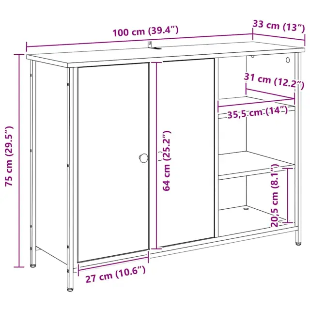 vidaXL Strani šal Umetni hrast 100 x 33 x 75 cm Konstruiran les
