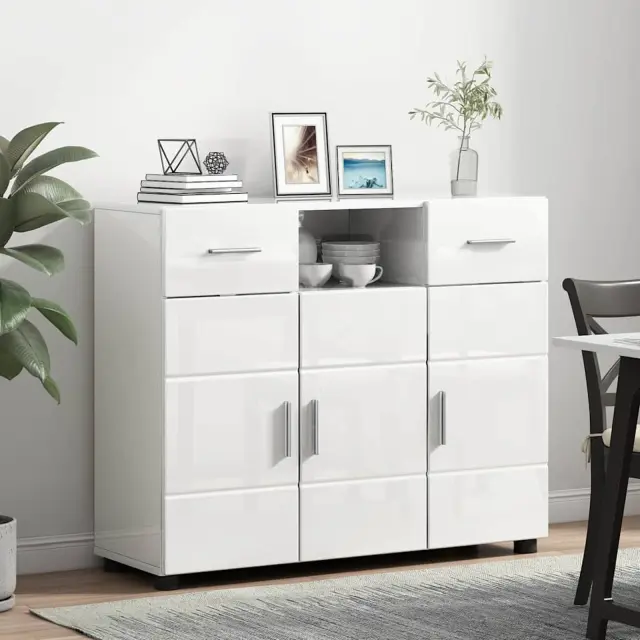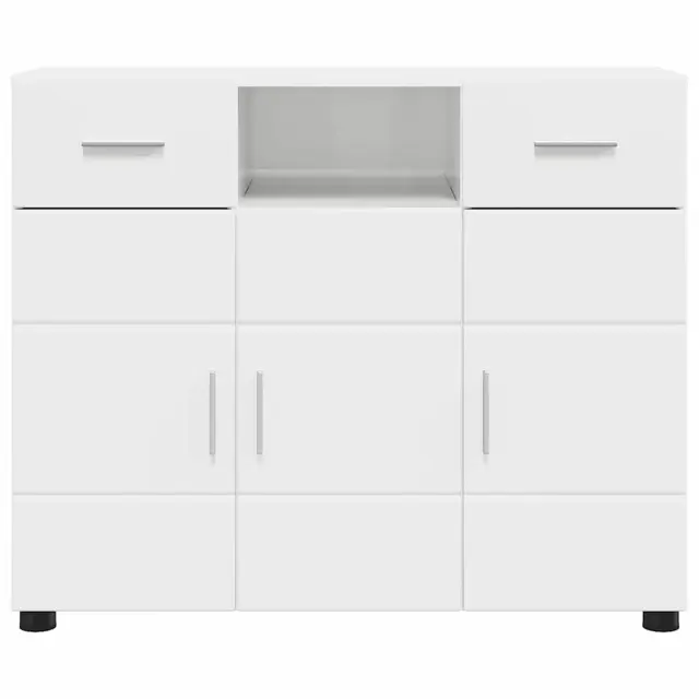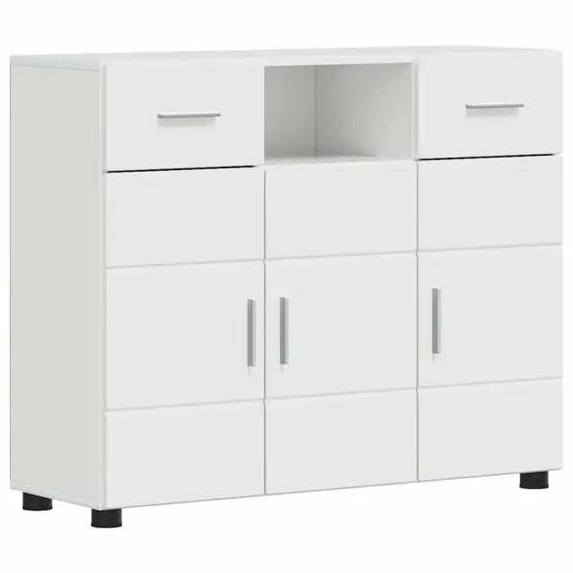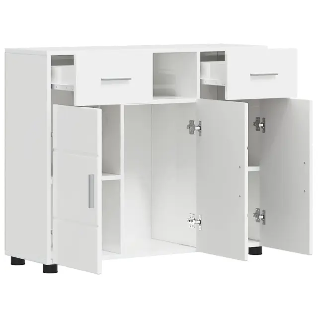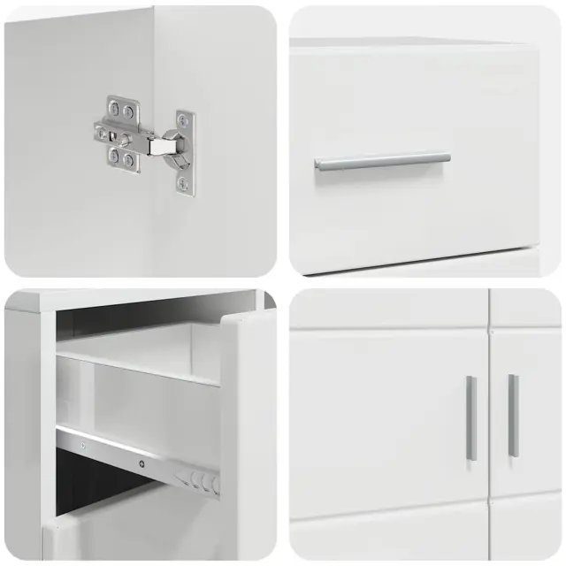 vidaXL Strani šal z vrati Bela z visokim sijajem 88.5 x 30.5 x 73 cm