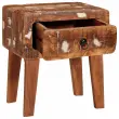 Ta rustikalna končna miza združuje preprostost in funkcionalnost. Idealna je za moderne dnevne sobe in spalnice. Čiste linije ji dajejo brezčasen videz, dodajajoč subtilno eleganco kateremukoli prostoru. Uporablja se lahko kot nočna omarica, stranska miza ob kavču ali pa kot osrednji kos v hodniku. Doda prijetno vzdušje s svojo preprosto privlačnostjo, poleg tega pa ponuja praktične rešitve za shranjevanje in površinske potrebe.
