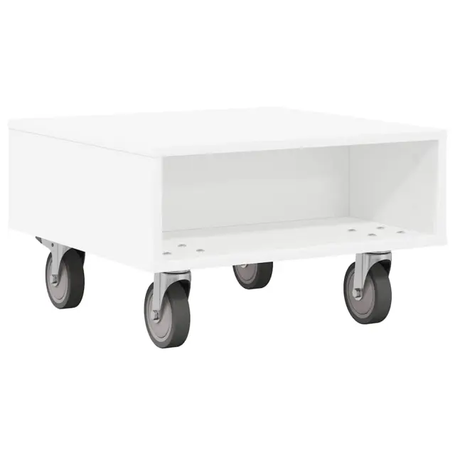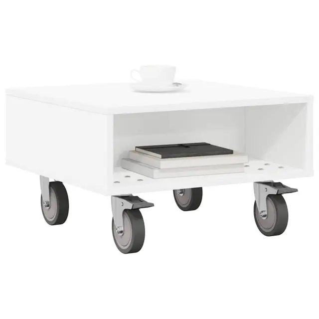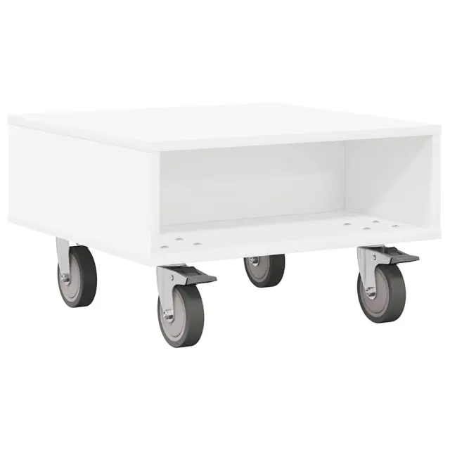 vidaXL Stranska miza s kolesi Bela 50,5 x 50 x 30 cm Konstruiran les