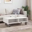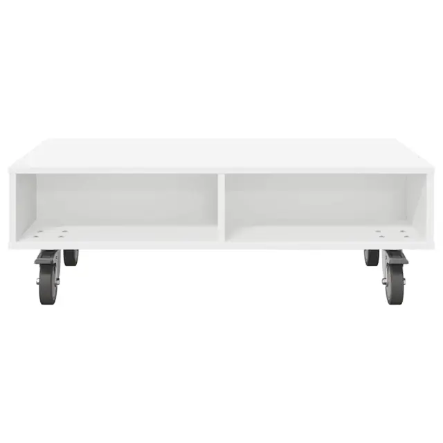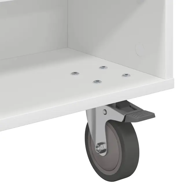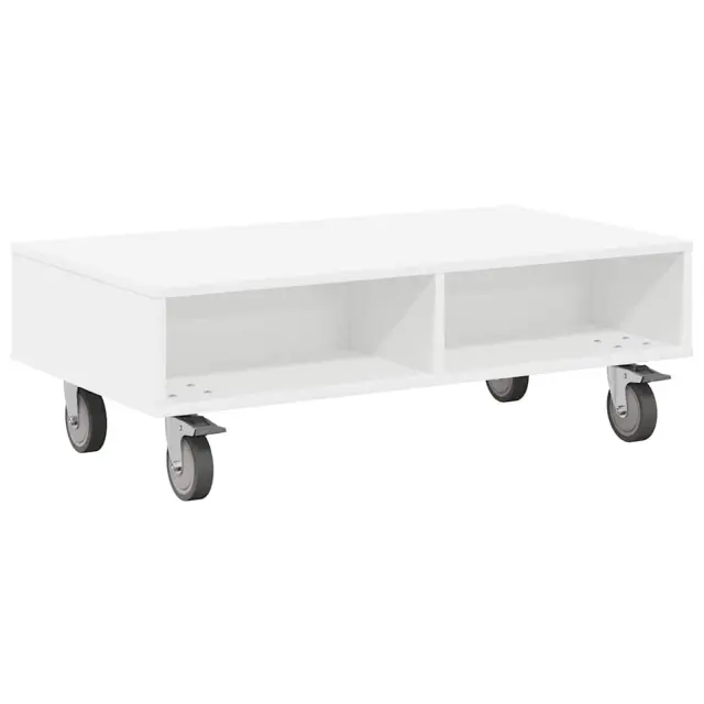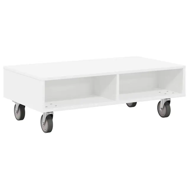 vidaXL Stranska miza s kolesi Bela 90 x 50 x 30 cm Konstruiran les