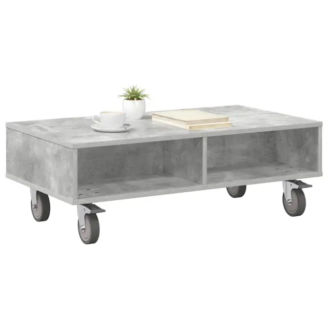 vidaXL Stranska miza s kolesi Betonsko siva 90 x 50 x 30 cm