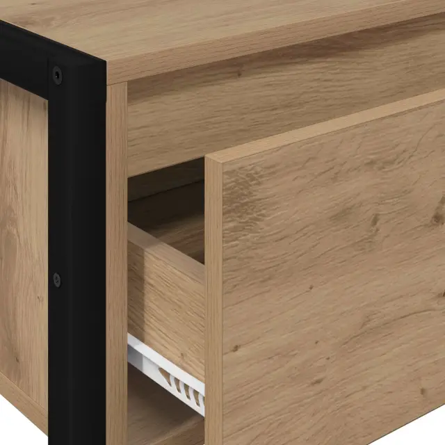 Ta industrijska končna miza prinaša kanček urbane sofisticiranosti v tvojo dnevno sobo. Oblikovana z mislijo na vzdržljivost in stil, njene čiste linije in surovine spominjajo na skladiščno estetiko, kar jo dela vsestranski dodatek vsakemu modernemu prostoru. Okrasi jo z knjigami, lampami ali umetniškimi deli, da ustvariš funkcionalno in stilsko središče.