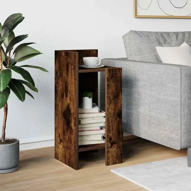 vidaXL Stranska mizica s polico dim. hrast 25,5x27x60 cm