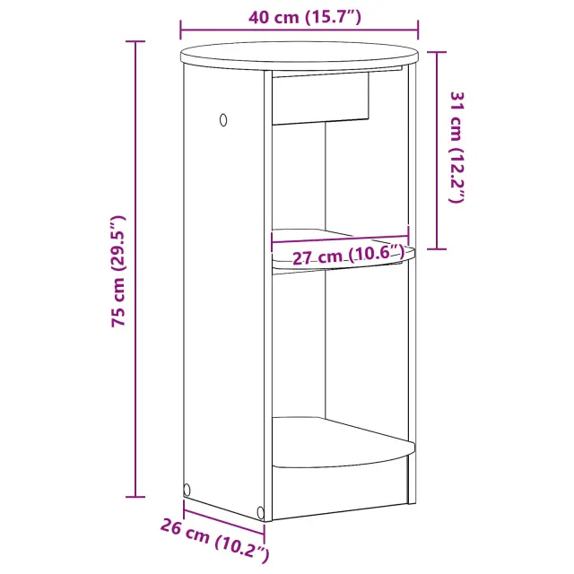 • Splošne dimenzije: 40 x 40 x 75 cm (D x Š x V)