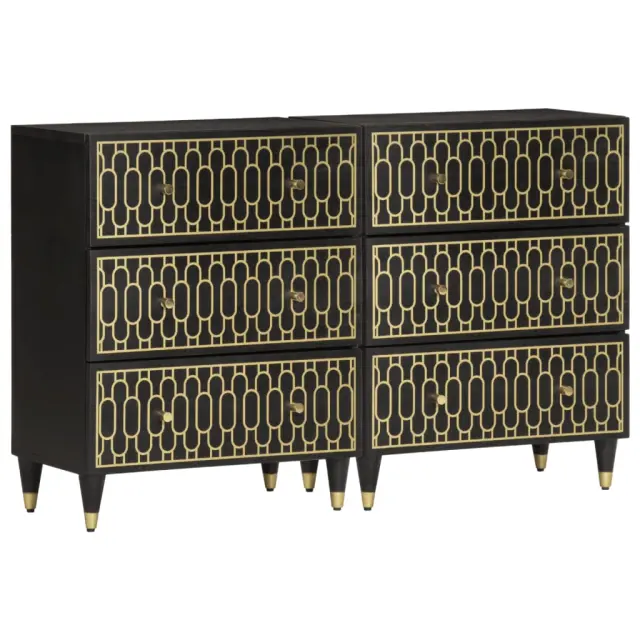 Te klasične stranske omarice z brezčasnim videzom so odličen dodatek za vaš dom. Trden mangov les: Trden mangov les je močan in trden tropski les, iz katerega je mogoče izdelati trpežno pohištvo. Zaradi čudovitih vzorcev lesa se vsak kos pohištva nekoliko razlikuje od ostalih. Omarica iz trdnega mangovega lesa je vzdržljiva in stabilna.Veliko prostora za shranjevanje: V omarici je dovolj prostora za shranjevanje, da bodo različne vsakodnevne potrebščine dobro urejene in dosegljive.Razstavna funkcija: Površina omarice za shranjevanje je odlična za razstavljanje vaših okrasnih predmetov, foto albumov ali majhnih rastlin.Trdne noge: Železne noge dodajo stranski omari trdnost in stabilnost.Retro slog: Organizator z ročno izrezljanimi cvetličnimi vzorci v vaše notranje prostore vnese razkošje retro sloga in postane osrednja točka vaše sobe. Dobro je vedeti:Vsak izdelek je edinstven, saj se med seboj razlikujejo po barvah in zrnatosti. Dostava je naključna, kar zagotavlja ekskluzivnost in individualnost vašega izdelka. Opozorilo:Za preprečitev prevračanja je treba ta izdelek uporabiti s priloženo napravo za pritrditev na steno.Material: Trden mangov les s črnim premazom, inženirski les, železoDimenzije (vsaka): 60 x 33 x 75 cm (D x Š x V)Z ročno izrezljanim vzorcemPotrebno sestavljanje: DaPaket vsebuje:2 x Stranska omaricaLegal Documents:Več informacij o tem, kako preprečiti prevračanje pohištva, je na voljo tukaj 3206311