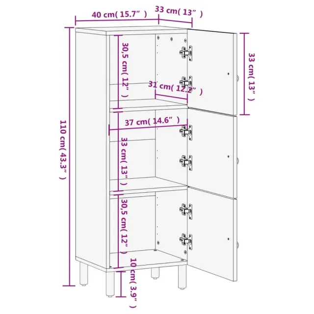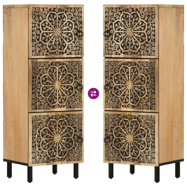 Ta klasična visoka omara je dekorativen in praktičen dodatek za vaš dom. Trden mangov les: Trden mangov les je močan in trden tropski les, iz katerega je mogoče izdelati trpežno pohištvo. Zaradi čudovitih vzorcev lesa se vsak kos pohištva nekoliko razlikuje od ostalih. Omarica iz trdnega mangovega lesa je vzdržljiva in stabilna.Veliko prostora za shranjevanje: V stranski omarici je dovolj prostora za shranjevanje, da bodo različne vsakodnevne potrebščine dobro urejene in dosegljive.Praktična vrata: Za vrati te stranske omarice lahko skrijete majhne predmete in poskrbite za urejen prostor.Trdne noge: Železne noge dodajo stranski omari trdnost in stabilnost.Retro slog: Ta omarica za shranjevanje z ročno izrezljanimi cvetličnimi vzorci v vaše notranje prostore vnese razkošje retro sloga in postane osrednja točka vaše sobe. Dobro je vedeti:Vsak izdelek je edinstven, saj se med seboj razlikujejo po barvah in zrnatosti. Dostava je naključna, kar zagotavlja ekskluzivnost in individualnost vašega izdelka. Opozorilo:Za preprečitev prevračanja je treba ta izdelek uporabiti s priloženo napravo za pritrditev na steno.Material: Trden mangov les z naravnim premazom, inženirski les, železoDimenzije: 40 x 33 x 110 cm (Š x G x V)Z ročno izrezljanim vzorcemPotrebno sestavljanje: DaLegal Documents:Več informacij o tem, kako preprečiti prevračanje pohištva, je na voljo tukaj 358241