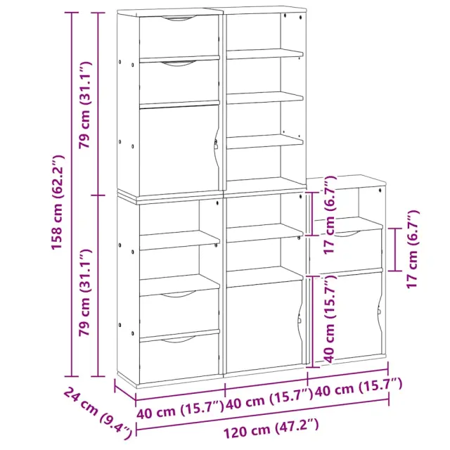 vidaXL Stranska omarica 5 kosi "ODDA" 40x24x79 cm trdna borovina
