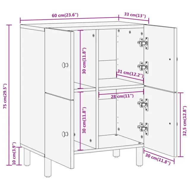 vidaXL Stranska omarica 60x33x75 cm trden akacijev les