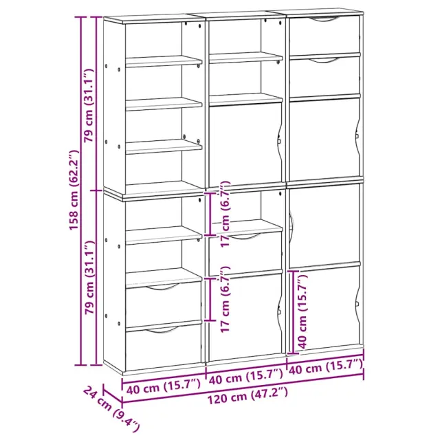 vidaXL Stranska omarica 6 kosi "ODDA" 40x24x79 cm trdna borovina