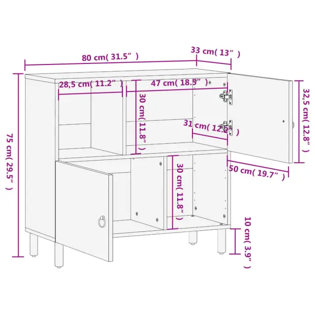 vidaXL Stranska omarica 80x33x75 cm trden mangov les
