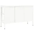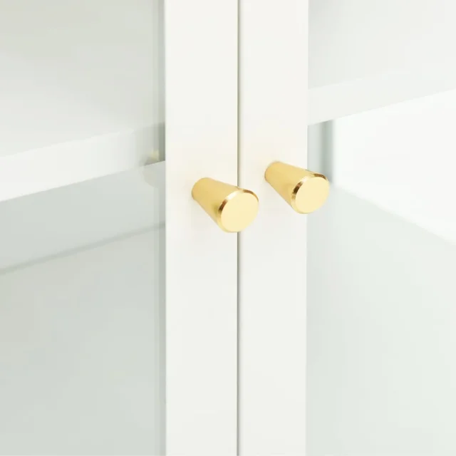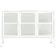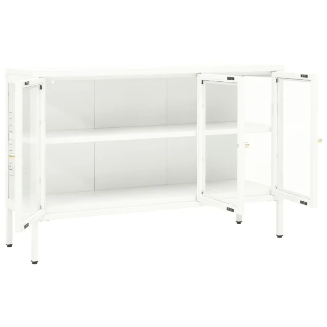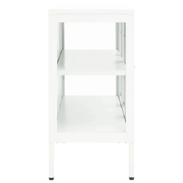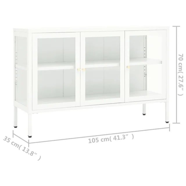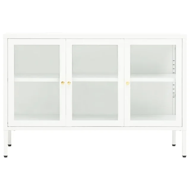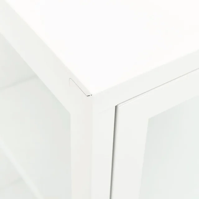 Ta omarica za shranjevanje je izdelana iz jekla, njena konstrukcija pa je močna in vzdržljiva, zato je primerna za dolgoletno uporabo. Omarica ima predelke s steklenimi vrati, zato ponuja veliko prostora za shranjevanje in razstavljanje vaših knjig, revij, DVD-jev, vaz in drugih okrasnih stvari, da bodo lepo organizirane in na dosegu roke. Polico lahko namestite na različne višine, da spremenite velikost prostora za shranjevanje. Noge lahko nastavite na potrebno višino, da bo stranska omarica ostala stabilna. Čiščenje je preprosto, z vlažno krpo.