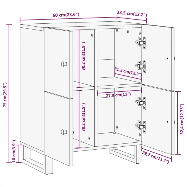 vidaXL Stranska omarica rjava in črna 60x33,5x75 cm trden mangov les