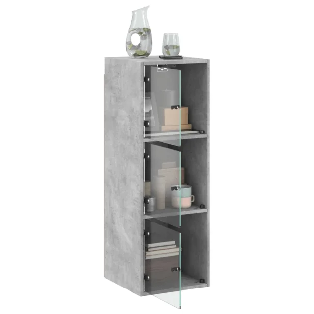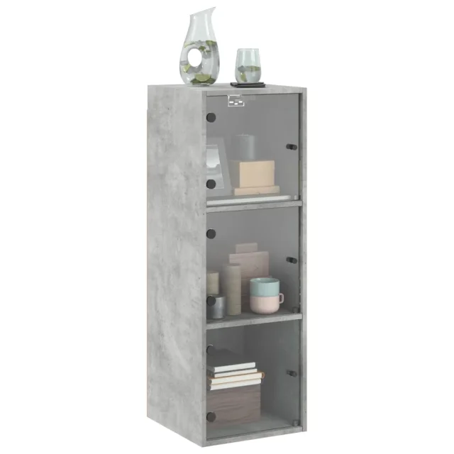 vidaXL Stranska omarica s steklenimi vrati betonsko siva 35x37x100 cm