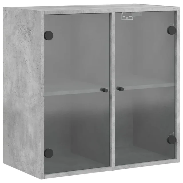 vidaXL Stranska omarica s steklenimi vrati betonsko siva 68x37x75,5 cm