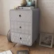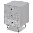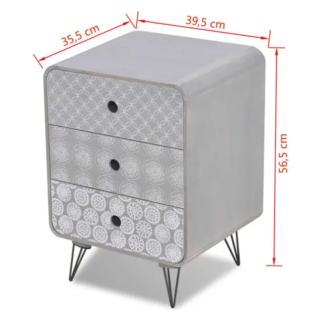 Stranska omarica s 3 predali se ponaša s preprosto, vendar stilsko obliko z elegantnimi dekorativnimi vzorci in se lahko uporablja kot nočna omarica ali kot stojalo za telefon. Ta stranska omarica bo praktičen in zelo dekorativen dodatek za vašo spalnico, dnevno sobo ali salon. Velika mizna plošča je idealna za razstavljanje okrasnih predmetov, okvirjev za fotografije ali celo rastlin v lončkih, medtem ko trije predali zagotavljajo dovolj prostora za shranjevanje vseh vrst manjših predmetov, da bodo organizirani in na dosegu roke. Zahvaljujoč izjemno kvalitetnemu MDF materialu ter močnim, jeklenim nogam, je ta stranska omarica zelo robustna in vzdržljiva. Montaža je zelo preprosta.Barva: SivaMaterial: Mediapan + jekloCelotne dimenzije: 39,5 x 35,5 x 56,5 cm (D x Š x V)Velikost vrhnjega predala: 37 x 30 x 14 cm (Š x G x V)Velikost sredinskega predala: 37 x 30 x 14 cm (Š x G x V)Velikost spodnjega predala: 37 x 30 x 14 cm (Š x G x V)Višina nog: 12 cmLahko se uporablja tudi kot nočna omarica ali kot stojalo za telefonEnostavna montažaMaks. nosilnost (skupaj): 50 kgMaks. nosilnost na predal: 2,5 kgOPOZORILO: Da se prepreči prevračanje, je treba ta izdelek uporabiti s priloženo napravo za pritrditev na stenoLegal Documents:Več informacij o tem, kako preprečiti prevračanje pohištva, je na voljo tukaj 242234