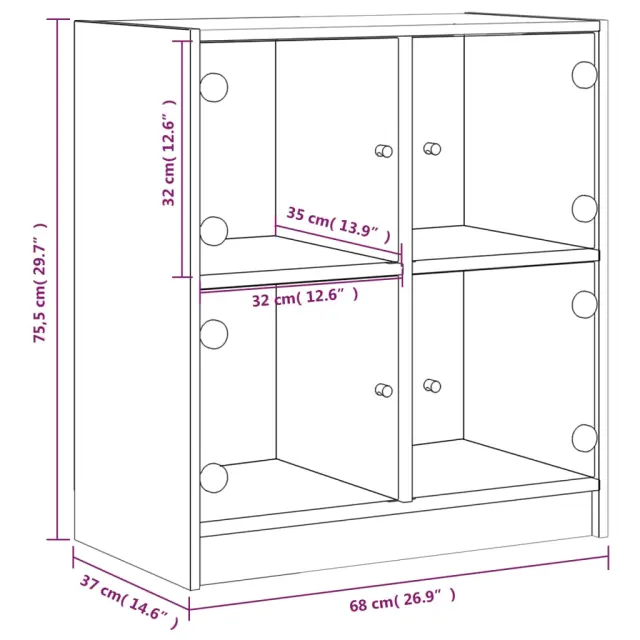 vidaXL Stranska omarica s steklenimi vrati bela 68x37x75,5 cm