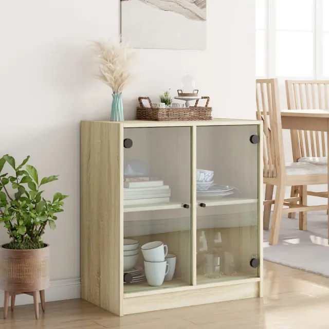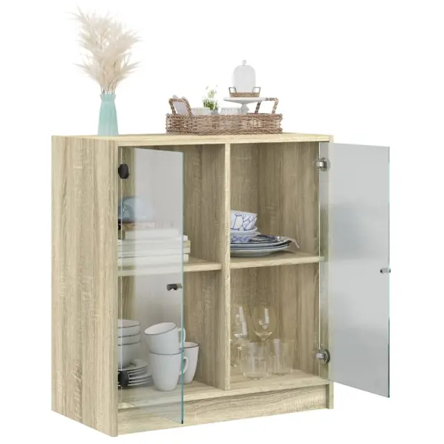 vidaXL Stranska omarica s steklenimi vrati sonoma hrast 68x37x75,5 cm