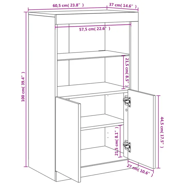 vidaXL Stranska omarica z LED lučkami betonsko siva inženirski les