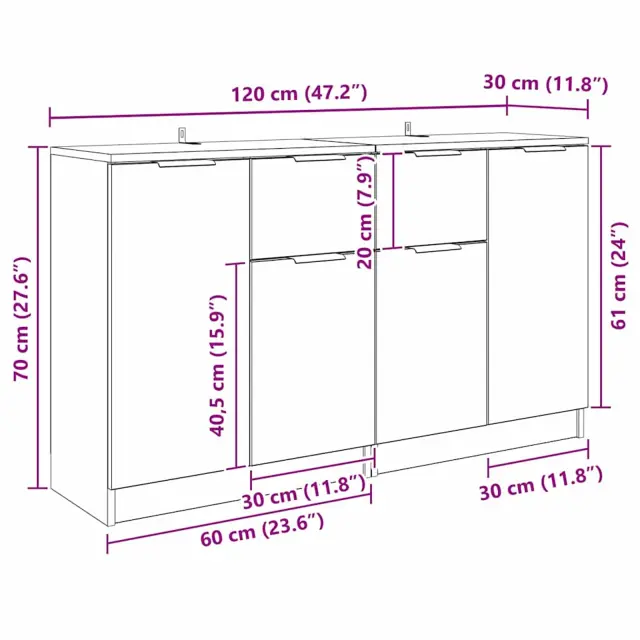 vidaXL Stranske omare s predalom 2 pcs Črna Orehovina 60 x 30 x 70 cm
